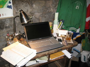 Old studioWhile biding time on a Thursday afternoon in May, I wonder what life will be like come September. I’ve been quietly working behind the scenes of two blogs, continuing a couple of columns for local fare, and beginning today, I add a new weekly story. It won’t actually go into publication until Memorial Day week, but it pays to stay ahead. The biggest news is a new office in a historic downtown building. From that perch, I shall begin to work on the two novels in front of me. Both have gone through first edits and it’s time to move them up the queue. I never used to bide my time, but patience, I have learned, is a true virtue. In honing my writing acumen and experimenting with style and circumstance, I can honestly say I’m ready for the big show. Since my advanced degrees do not include an MFA, nor do I tout advanced journalism creds or best-selling national rag publications among the attributes of my CV, I needed to hoe the rocky road until it evened out. The office makes it official. I have loved the studio I created at home, but it’s gotten a little small and I wanted a view of Lake Michigan. Thanks to a good friend, June 1st will be the big move. I haven’t carried a computer or briefcase to an office in seven years. Doing so, I believe, will take me away from the daily machinations of home chores and worries I should be doing something else besides writing. It also helps that my writing is paying enough to make such a move. Instead of fits and starts from publishing through book signings and sales, income now outweighs expenses. Phew! Nothing of this sort could happen, however, without the wonderful assistance of a wonderful partner and son who has so sincerely helped me catapult into yet another career that allows enough flexibility to take care of everyone in my life. And it is to all of those people I shall devote the next several years of my life, making sure daily wants and lifelong desires don’t go without hope. As I’ve practiced for the last nine years, I shall continue paying forward the Universal blessings showered upon me. Biding time over. It’s time to write.