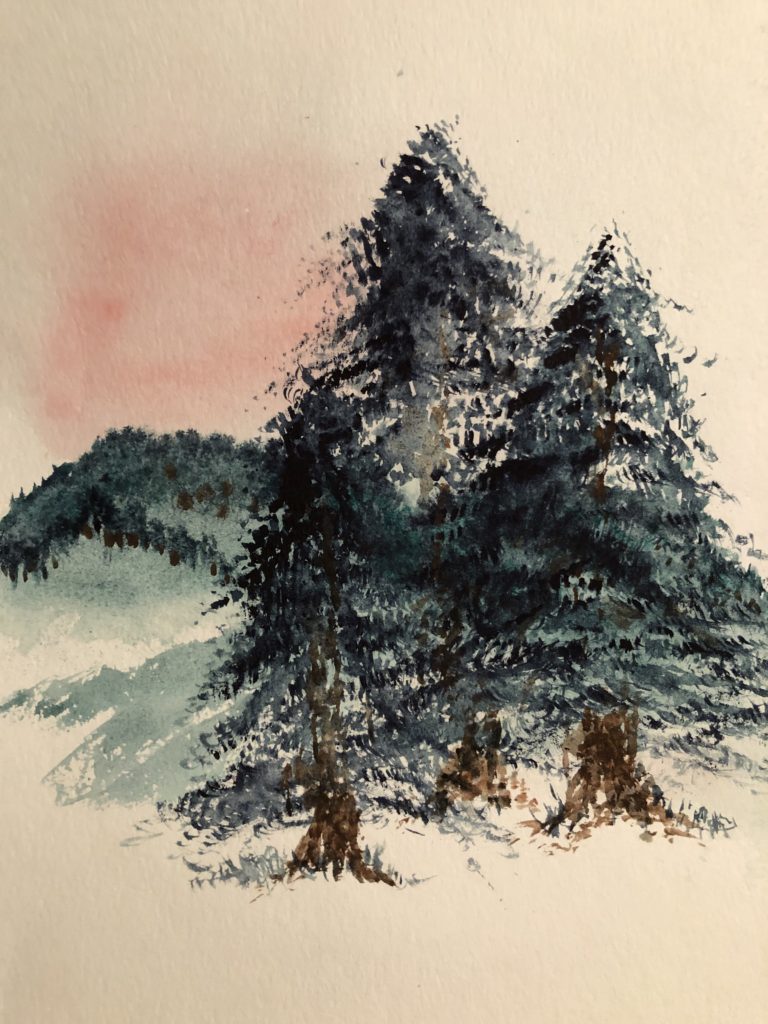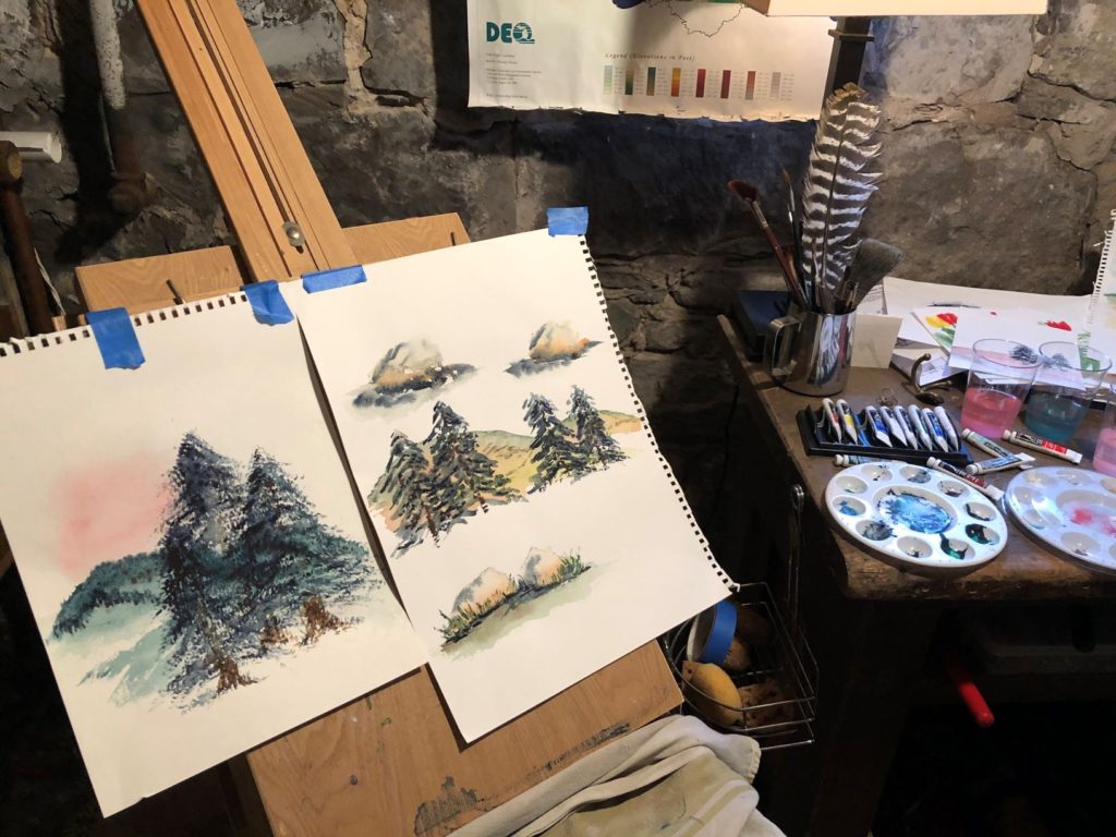 In the repertoire of hobbies, one of my favorites is practiced the least, calming art. I love to paint, but much like my poetry, my emotions need to be frazzled. They need to be in disorder. I don’t know how better to explain the phenomenon, but if I am at peace, I don’t paint. So, I guess you can tell if I’m a little discombobulated when I walk downstairs and open the art studio. And even then I sit in front of my easel and contemplate what would make me settle. In fact, I go so far as to dredge up muck that would cause me to want to settle my mind. Almost like a game face. Except in my playing days, I’d get ramped up to throw ninety-five mile per hour fastballs. Now, I grab a paintbrush and throw water and paint at a piece of paper. As soon as the brush strokes begin, I feel my face lighten; my shoulders drop. My mind focuses on color and wash; on blends and bleeds. I am certainly not a textbook watercolorist. I experiment with brushes, color, even the elevation of the easel so I can watch the colors bleed down the paper and create an effect I may screw up with too many brush strokes or too many fine-tunes. The colors run as they wish, without my interdiction. When all is over, I find my breathing easier and my steps, lighter. The day, or evening, can go on, and I am without doom and gloom. Most often, I paint when depressed, but lately it’s been more from the energy of the unsteady world around me. Vibrations of negativity look much better in paint than caustic acid flowing from the axons and dendrites to neural pathways of depression. This April 16th and 17th, I needed to calm. It’s daughter Ashley’s birthday, and another virtual party awaits. Calming art dispels the evil. Painting allows me to breathe.